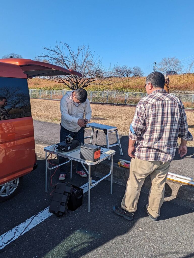 各務原浄水公園で移動運用 活動報告 2023.12.10 2023年12月10日 いつもの浄水公園で、移動運用。 7MHzワッチ中 アンテナ調整中? なにやら、奮闘中… 楽しい移動運用でした、仲間も増えて大満足。