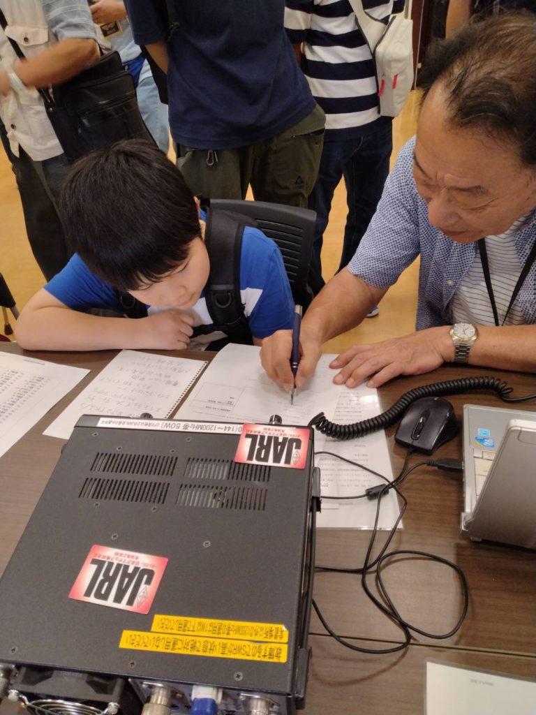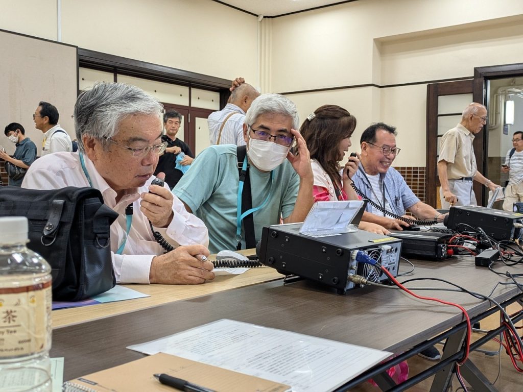 8J2TKI/8J2KONAN 東海ハムの祭典会場で公開運用・体験運用 活動報告 2024.09.29 2024年9月29日 名古屋市の岡谷鋼機名古屋公会堂で8J2TKI/8J2KONANの公開運用をしました。 岡谷鋼機名古屋公会堂 朝8:30集合、関係者多数 まずはアンテナ設営 開場すぐからたくさんの希望者が… 運用中です 小学生も体験運用に参戦 手慣れた様子でCQ,CQ 体験運用です わたまいさんも…. 森田JARL会長にも参加いただきました ご来場いただいた皆さま、ありがとうございました。