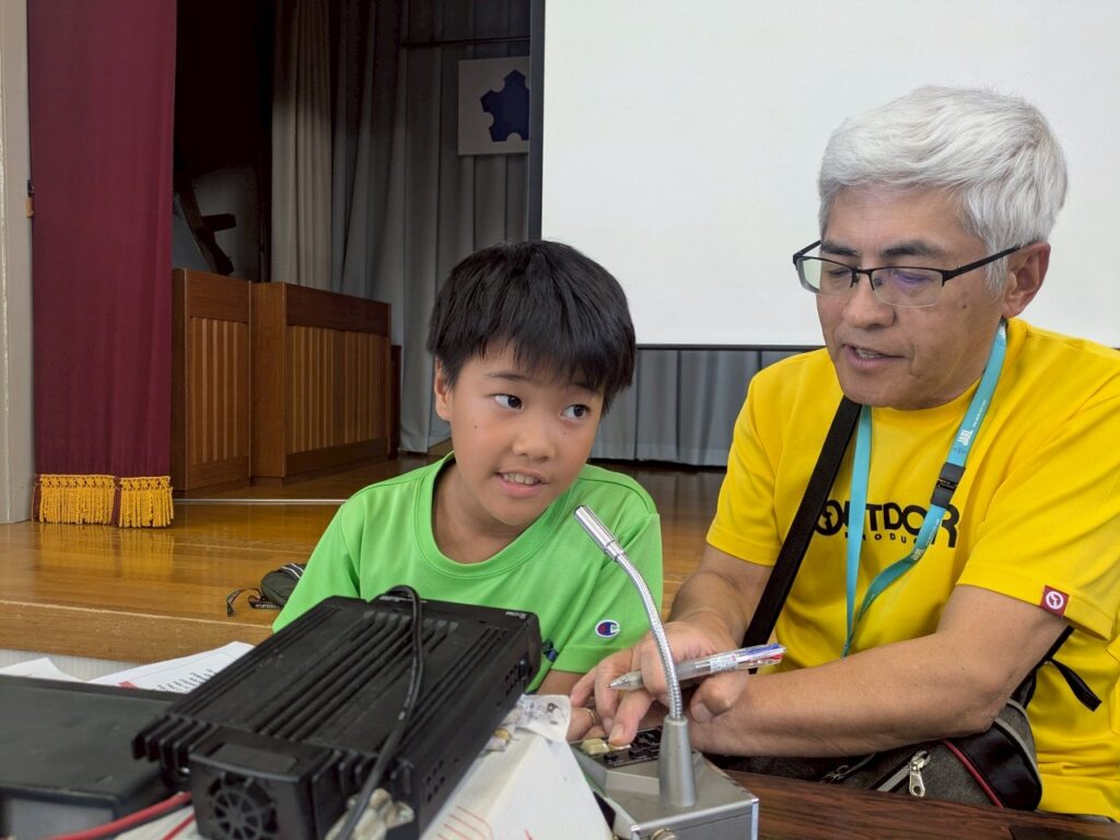 2025年7月21日に、大垣市の宇留生地区センターで開催された『あそびだいすキッズ おもしろ電波教室』に参加させていただき、JJ2YWMの体験運用を行いました。